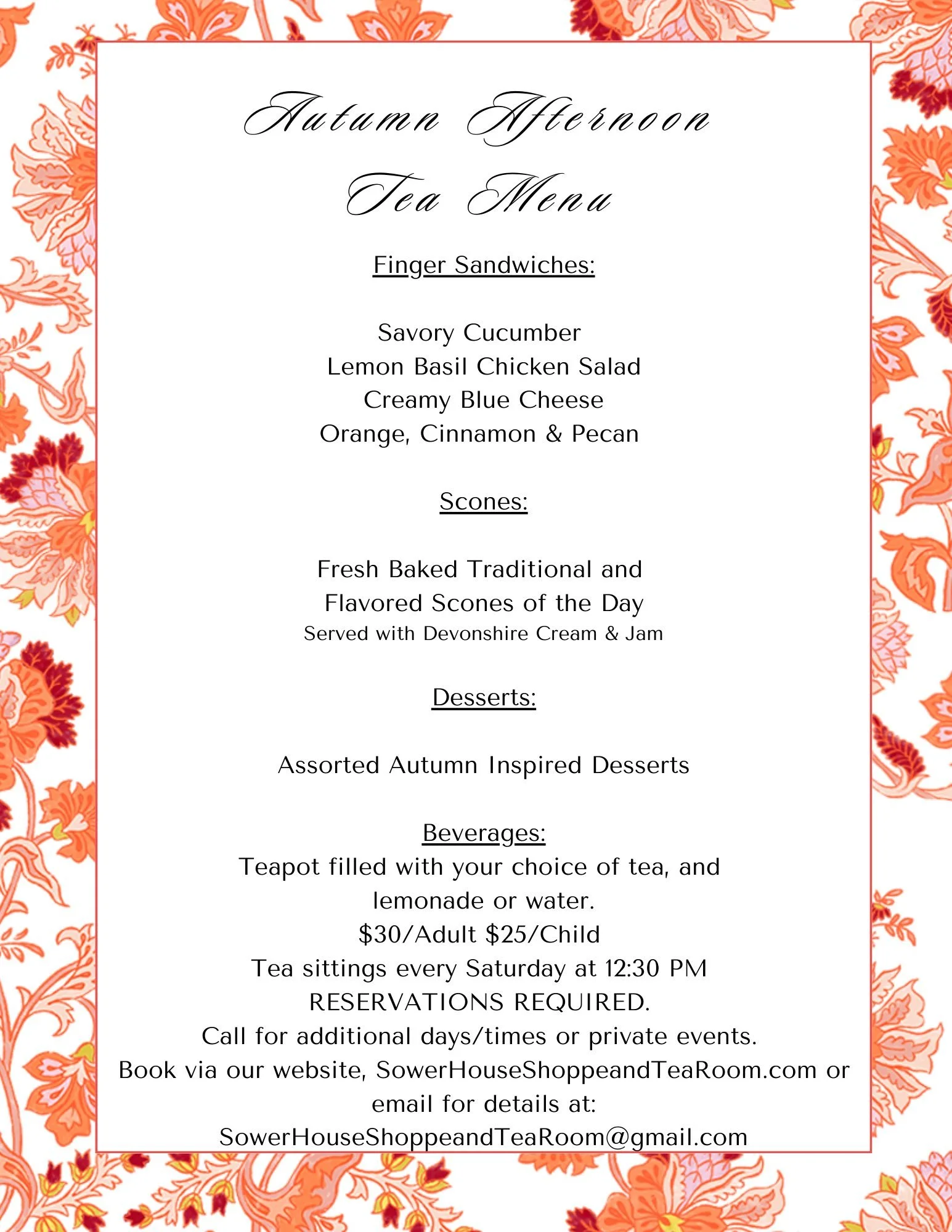We are open for tea sittings every Saturday at 12:30 and 2:30. Reservations are required. (please reach out via email to discuss alternate days/times). For bookings, please click here or email us at: SowerHouseShoppeandTearoom@gmail.com